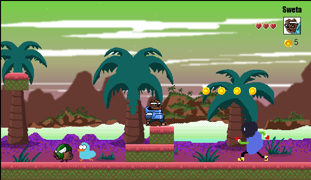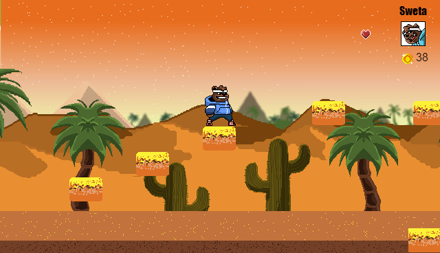 for the first time i made a platform pixel game with my own figures. The aim of the game is to attack the enemies, collect money and yogurt cups. This game has only 4 levels and is for young and old. When you finish the fourth level, the game starts again from the beginning.